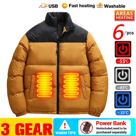 6 Heating Zones Smart Switch Electric USB Heated Cotton Jacket Control 3 Gear Adjustment Winter Outdoor Sportswear Heated Coat